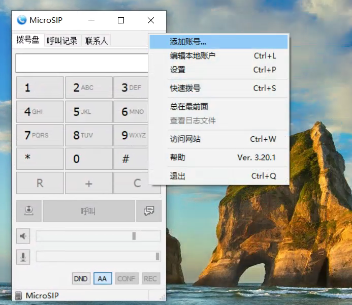 我在PC端常用的SIP软件是MicroSIP,下载并安装完毕之后,可以看到如下界面: