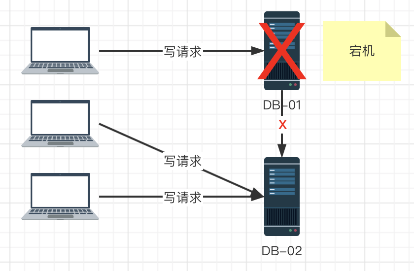 要注意的是,这里保证的是可用性,并不一定保证准确性(或者说一致性),有可能DB-01上的数据版本已经变成了V2,但是DB-02上的数据还是V1.