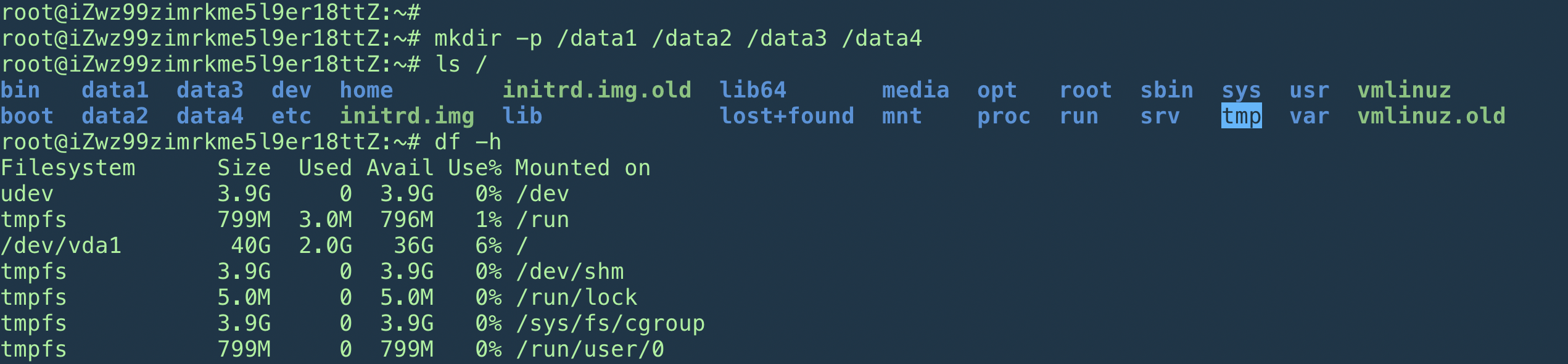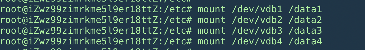 1 | mkdir -p /data1 /data2 /data3 /data4 |